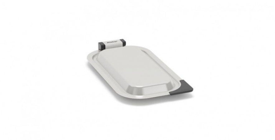 Buffetdeckel 1/3 EdelstahlBuffet lid 1/3 stainless steelBuffet lid GN 1/3 made of stainless steel with plasticcorner grip and fixed hinge. The hinge has an interlockin opened position. Suitable for storage, regenerationand warm/cold serving. The lid is
