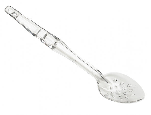 Keep your operation running smoothly with the Cambro 13" Clear Camwear Perforated Salad Bar / Buffet Spoon from Cambro. Designed for use in demanding foodservice environments, this product delivers the durability and performance you've come to expect from the Cambro brand. Whether you’re streamlining your service, maintaining food temperature, or offering a safe and efficient seating solution, this Cambro product ensures dependable results shift after shift.