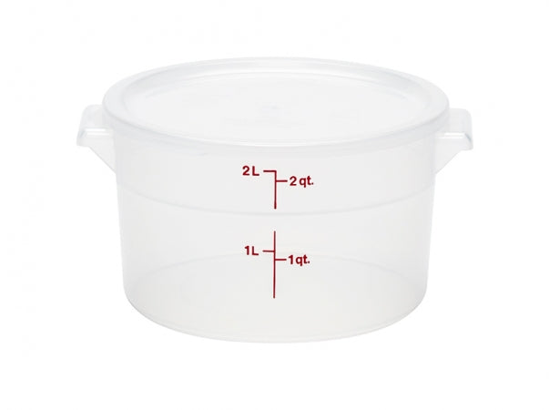 Keep your operation running smoothly with the Cambro 2 Qt. Translucent Round Storage Container from Cambro. Designed for use in demanding foodservice environments, this product delivers the durability and performance you've come to expect from the Cambro brand. Whether you’re streamlining your service, maintaining food temperature, or offering a safe and efficient seating solution, this Cambro product ensures dependable results shift after shift.