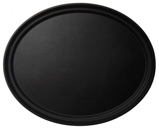 Cambro Camtread 19" x 23" Black Non-Skid Oval Serving Tray