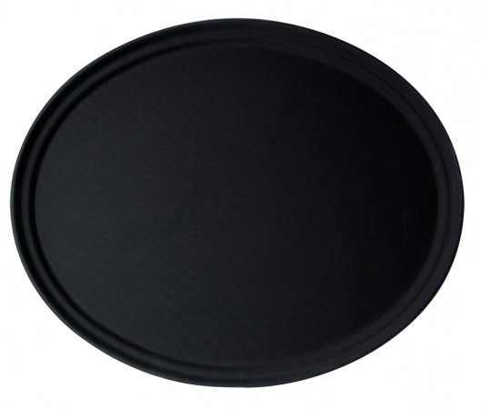 Keep your operation running smoothly with the Cambro Camtread 29" x 24" Black Non-Skid Oval Serving Tray from Cambro. Designed for use in demanding foodservice environments, this product delivers the durability and performance you've come to expect from the Cambro brand. Whether you’re streamlining your service, maintaining food temperature, or offering a safe and efficient seating solution, this Cambro product ensures dependable results shift after shift.