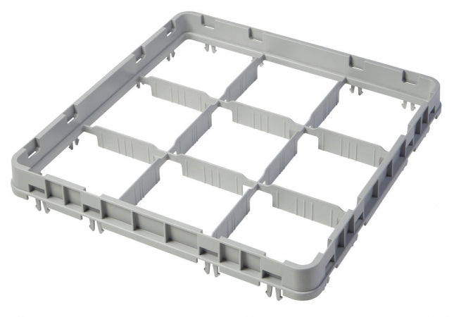 Keep your operation running smoothly with the Cambro Soft Gray 9 Compartment Full Size Half Drop Camrack Extender from Cambro. Designed for use in demanding foodservice environments, this product delivers the durability and performance you've come to expect from the Cambro brand. Whether you’re streamlining your service, maintaining food temperature, or offering a safe and efficient seating solution, this Cambro product ensures dependable results shift after shift.