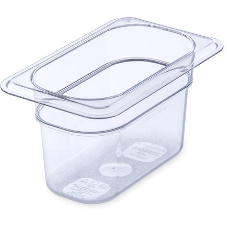 The Carlisle StorPlus 1/9 Size Clear Food Pan - 4" Deep by Carlisle Foodservice is engineered to meet the rigorous demands of professional kitchens. Whether it's used for food prep, ventilation, cooking, or storage, this equipment ensures long-term durability and operational excellence. With quality materials and precision engineering, this product is a staple in foodservice operations worldwide.