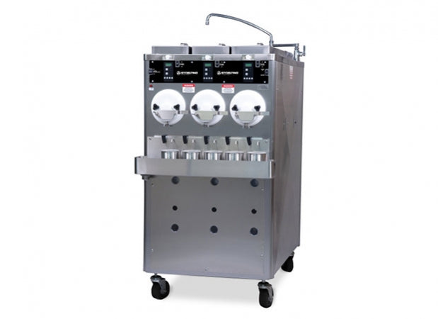 Optimize Kitchen Performance with the STOELTING TRIPLE BARREL CONTINUOUS FLOW FREEZER GRAVITY FED AIR REMOTE COOLING THREE 8.8 GALLON (33.32 LITERS) HOPPER VOLUME 380V/50HZ/3PH DIMENSIONS 32 1/2'' (82.6 CM) X 61 7/8'' (157.2 CM) X 47 1/8'' (119.7 CM) (WXHXD)